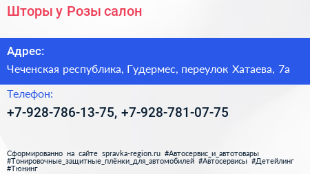 Шторы у Розы, салон по адресу Чеченская республика, Гудермес, переулок Хатаева, 7а в дальнейшем Организация, размещена в следующих категориях: