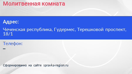 Молитвенная комната по адресу Чеченская республика, Гудермес, Терешковой проспект, 18/1 в дальнейшем Организация, размещена в следующих категориях: