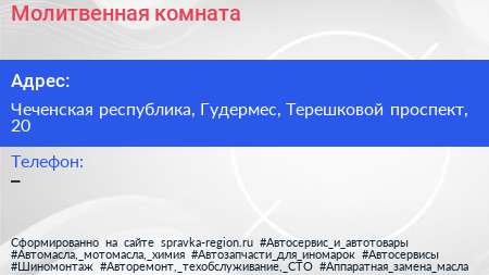 Молитвенная комната по адресу Чеченская республика, Гудермес, Терешковой проспект, 20 в дальнейшем Организация, размещена в следующих категориях: