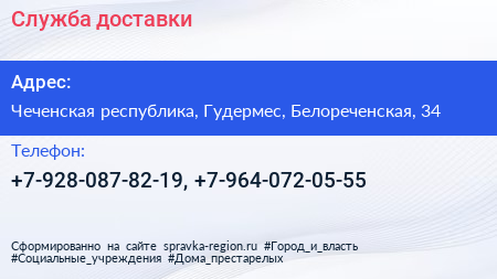 Служба доставки по адресу Чеченская республика, Гудермес, Белореченская, 34 в дальнейшем Организация, размещена в следующих категориях: