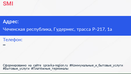 SMI по адресу Чеченская республика, Гудермес, трасса Р-217, 1а в дальнейшем Организация, размещена в следующих категориях: