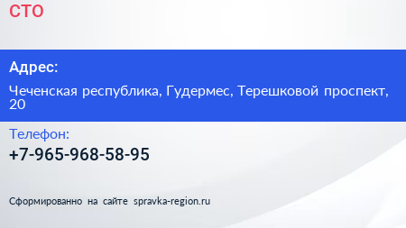 СТО по адресу Чеченская республика, Гудермес, Терешковой проспект, 20 в дальнейшем Организация, размещена в следующих категориях: