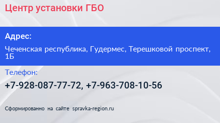 Центр установки ГБО по адресу Чеченская республика, Гудермес, Терешковой проспект, 1Б в дальнейшем Организация, размещена в следующих категориях: