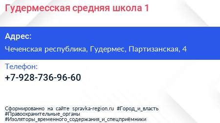 Гудермесская средняя школа №1 по адресу Чеченская республика, Гудермес, Партизанская, 4 в дальнейшем Организация, размещена в следующих категориях: