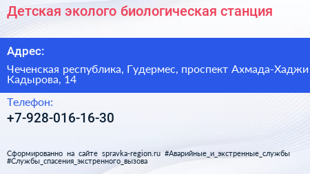 Детская эколого-биологическая станция по адресу Чеченская республика, Гудермес, проспект Ахмада-Хаджи Кадырова, 14 в дальнейшем Организация, размещена в следующих категориях: