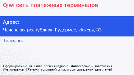 Qiwi, сеть платежных терминалов по адресу Чеченская республика, Гудермес, Исаева, 33 в дальнейшем Организация, размещена в следующих категориях: