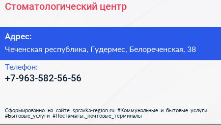 Стоматологический центр по адресу Чеченская республика, Гудермес, Белореченская, 38 в дальнейшем Организация, размещена в следующих категориях: