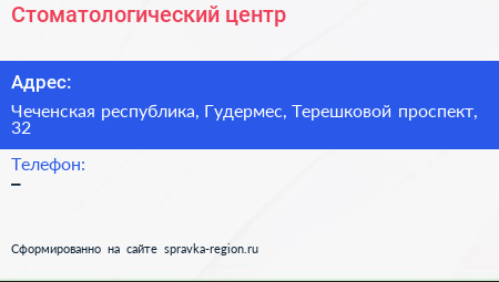 Стоматологический центр по адресу Чеченская республика, Гудермес, Терешковой проспект, 32 в дальнейшем Организация, размещена в следующих категориях: