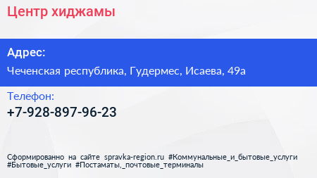 Центр хиджамы по адресу Чеченская республика, Гудермес, Исаева, 49а в дальнейшем Организация, размещена в следующих категориях:
