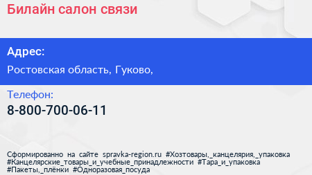 Билайн, салон связи по адресу Ростовская область, Гуково, в дальнейшем Организация, размещена в следующих категориях: