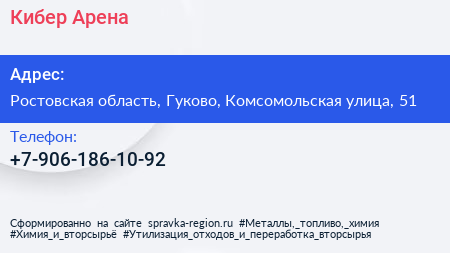 Кибер Арена по адресу Ростовская область, Гуково, Комсомольская улица, 51 в дальнейшем Организация, размещена в следующих категориях: