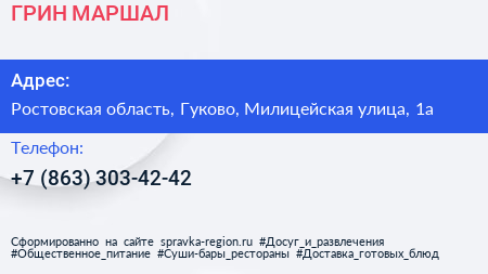 ГРИН МАРШАЛ по адресу Ростовская область, Гуково, Милицейская улица, 1а в дальнейшем Организация, размещена в следующих категориях:
