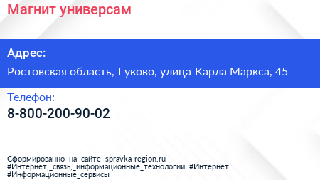 Магнит, универсам по адресу Ростовская область, Гуково, улица Карла Маркса, 45 в дальнейшем Организация, размещена в следующих категориях: