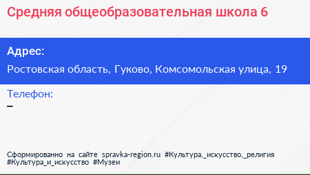 Средняя общеобразовательная школа №6 по адресу Ростовская область, Гуково, Комсомольская улица, 19 в дальнейшем Организация, размещена в следующих категориях:
