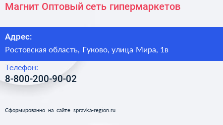 Магнит Оптовый, сеть гипермаркетов по адресу Ростовская область, Гуково, улица Мира, 1в в дальнейшем Организация, размещена в следующих категориях: