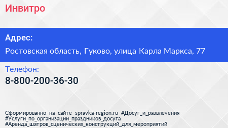 Инвитро по адресу Ростовская область, Гуково, улица Карла Маркса, 77 в дальнейшем Организация, размещена в следующих категориях: