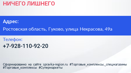 НИЧЕГО ЛИШНЕГО по адресу Ростовская область, Гуково, улица Некрасова, 49а в дальнейшем Организация, размещена в следующих категориях: