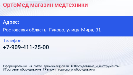 ОртоМед, магазин медтехники по адресу Ростовская область, Гуково, улица Мира, 31 в дальнейшем Организация, размещена в следующих категориях: