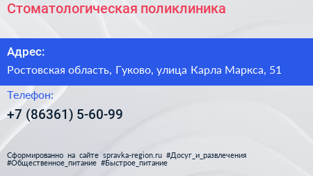 Стоматологическая поликлиника по адресу Ростовская область, Гуково, улица Карла Маркса, 51 в дальнейшем Организация, размещена в следующих категориях:
