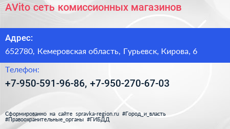 AVito, сеть комиссионных магазинов по адресу 652780, Кемеровская область, Гурьевск, Кирова, 6 в дальнейшем Организация, размещена в следующих категориях: