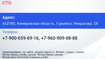 СТО по адресу 652780, Кемеровская область, Гурьевск, Некрасова, 18 в дальнейшем Организация, размещена в следующих категориях: