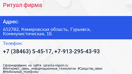 Ритуал, фирма по адресу 652782, Кемеровская область, Гурьевск, Коммунистическая, 1Б в дальнейшем Организация, размещена в следующих категориях: