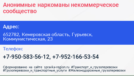 Анонимные наркоманы, некоммерческое сообщество по адресу 652782, Кемеровская область, Гурьевск, Коммунистическая, 23 в дальнейшем Организация, размещена в следующих категориях: