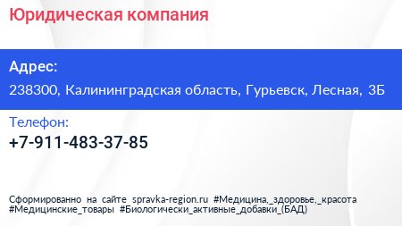 Юридическая компания по адресу 238300, Калининградская область, Гурьевск, Лесная, 3Б в дальнейшем Организация, размещена в следующих категориях: