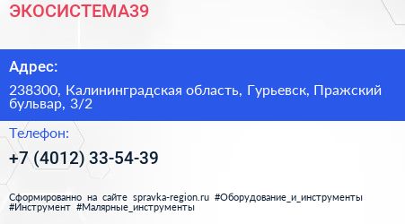 ЭКОСИСТЕМА39 по адресу 238300, Калининградская область, Гурьевск, Пражский бульвар, 3/2 в дальнейшем Организация, размещена в следующих категориях:
