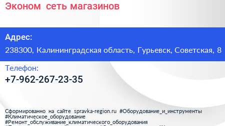 Эконом+, сеть магазинов по адресу 238300, Калининградская область, Гурьевск, Советская, 8 в дальнейшем Организация, размещена в следующих категориях: