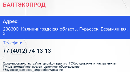 БАЛТЭКОПРОД по адресу 238300, Калининградская область, Гурьевск, Безымянная, 3 в дальнейшем Организация, размещена в следующих категориях:
