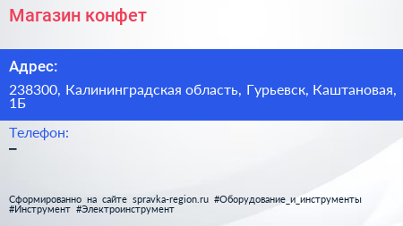 Магазин конфет по адресу 238300, Калининградская область, Гурьевск, Каштановая, 1Б в дальнейшем Организация, размещена в следующих категориях: