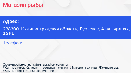 Магазин рыбы по адресу 238300, Калининградская область, Гурьевск, Авангардная, 1а к1 в дальнейшем Организация, размещена в следующих категориях: