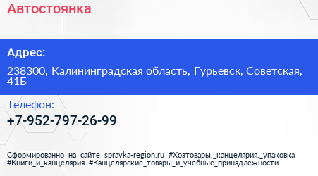 Автостоянка по адресу 238300, Калининградская область, Гурьевск, Советская, 41Б в дальнейшем Организация, размещена в следующих категориях: