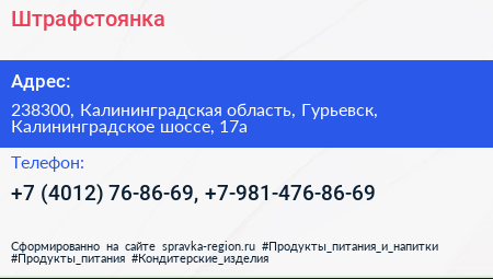 Адрес: Калининградская область, Гурьевск, Калининградское шоссе, 10