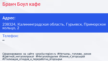 Бранч & Боул, кафе по адресу 238324, Калининградская область, Гурьевск, Приморское кольцо, 2 в дальнейшем Организация, размещена в следующих категориях: