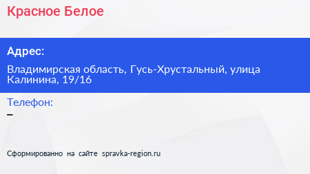 Красное & Белое по адресу Владимирская область, Гусь-Хрустальный, улица Калинина, 19/16 в дальнейшем Организация, размещена в следующих категориях: