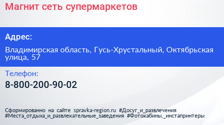 Магнит, сеть супермаркетов по адресу Владимирская область, Гусь-Хрустальный, Октябрьская улица, 57 в дальнейшем Организация, размещена в следующих категориях: