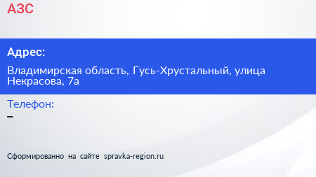 АЗС по адресу Владимирская область, Гусь-Хрустальный, улица Некрасова, 7а в дальнейшем Организация, размещена в следующих категориях: