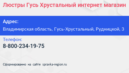 Люстры Гусь Хрустальный, интернет-магазин по адресу Владимирская область, Гусь-Хрустальный, Рудницкой, 3 в дальнейшем Организация, размещена в следующих категориях: