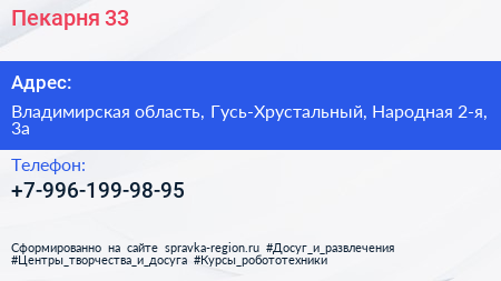 Пекарня №33 по адресу Владимирская область, Гусь-Хрустальный, Народная 2-я, 3а в дальнейшем Организация, размещена в следующих категориях: