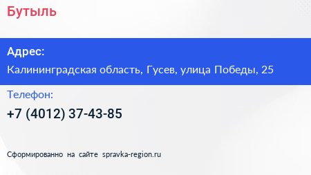 Бутыль по адресу Калининградская область, Гусев, улица Победы, 25 в дальнейшем Организация, размещена в следующих категориях:
