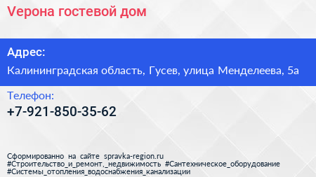 Vерона, гостевой дом по адресу Калининградская область, Гусев, улица Менделеева, 5а в дальнейшем Организация, размещена в следующих категориях: