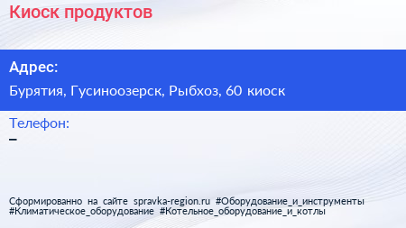 Киоск продуктов по адресу Бурятия, Гусиноозерск, Рыбхоз, 60 киоск в дальнейшем Организация, размещена в следующих категориях: