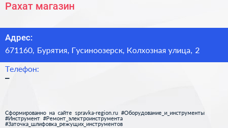 Рахат, магазин по адресу 671160, Бурятия, Гусиноозерск, Колхозная улица, 2 в дальнейшем Организация, размещена в следующих категориях: