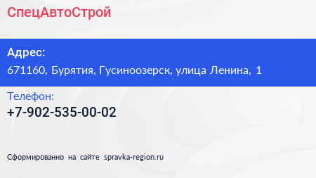СпецАвтоСтрой по адресу 671160, Бурятия, Гусиноозерск, улица Ленина, 1 в дальнейшем Организация, размещена в следующих категориях:
