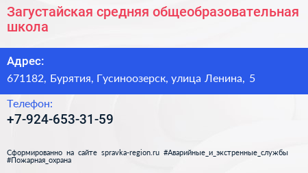 Загустайская средняя общеобразовательная школа по адресу 671182, Бурятия, Гусиноозерск, улица Ленина, 5 в дальнейшем Организация, размещена в следующих категориях:
