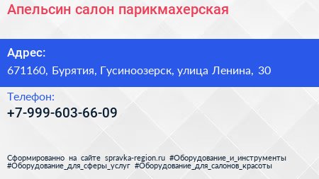 Апельсин, салон-парикмахерская по адресу 671160, Бурятия, Гусиноозерск, улица Ленина, 30 в дальнейшем Организация, размещена в следующих категориях:
