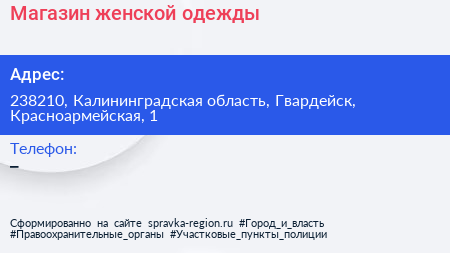 Магазин женской одежды по адресу 238210, Калининградская область, Гвардейск, Красноармейская, 1 в дальнейшем Организация, размещена в следующих категориях: