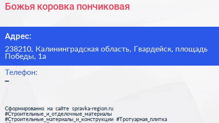 Божья коровка, пончиковая по адресу 238210, Калининградская область, Гвардейск, площадь Победы, 1а в дальнейшем Организация, размещена в следующих категориях: